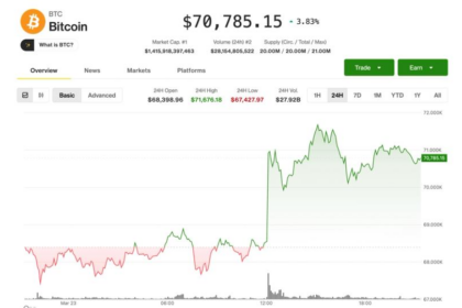 Bitcoin BTC$70,964.77 held onto gains Monday after an early surge above $70,000,…